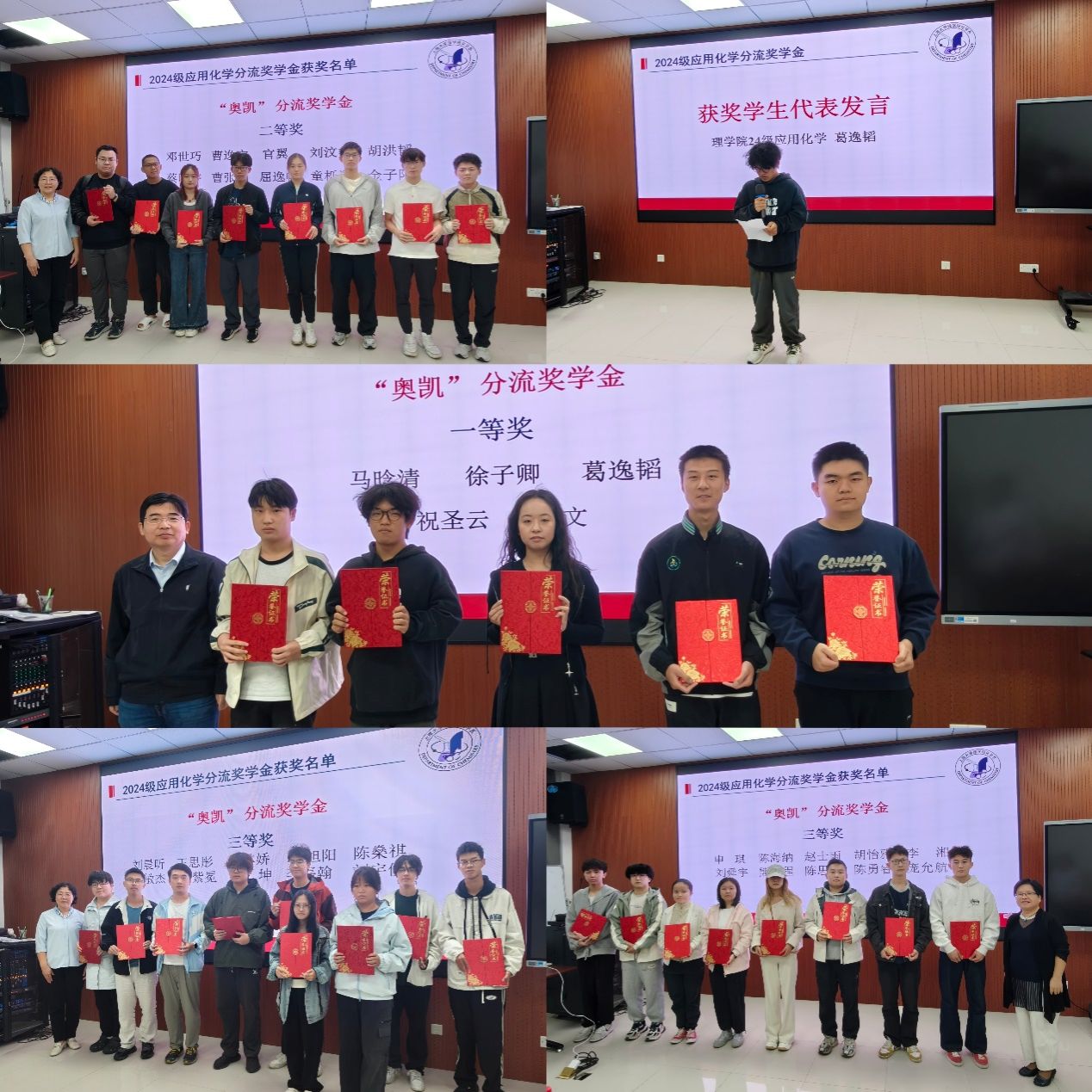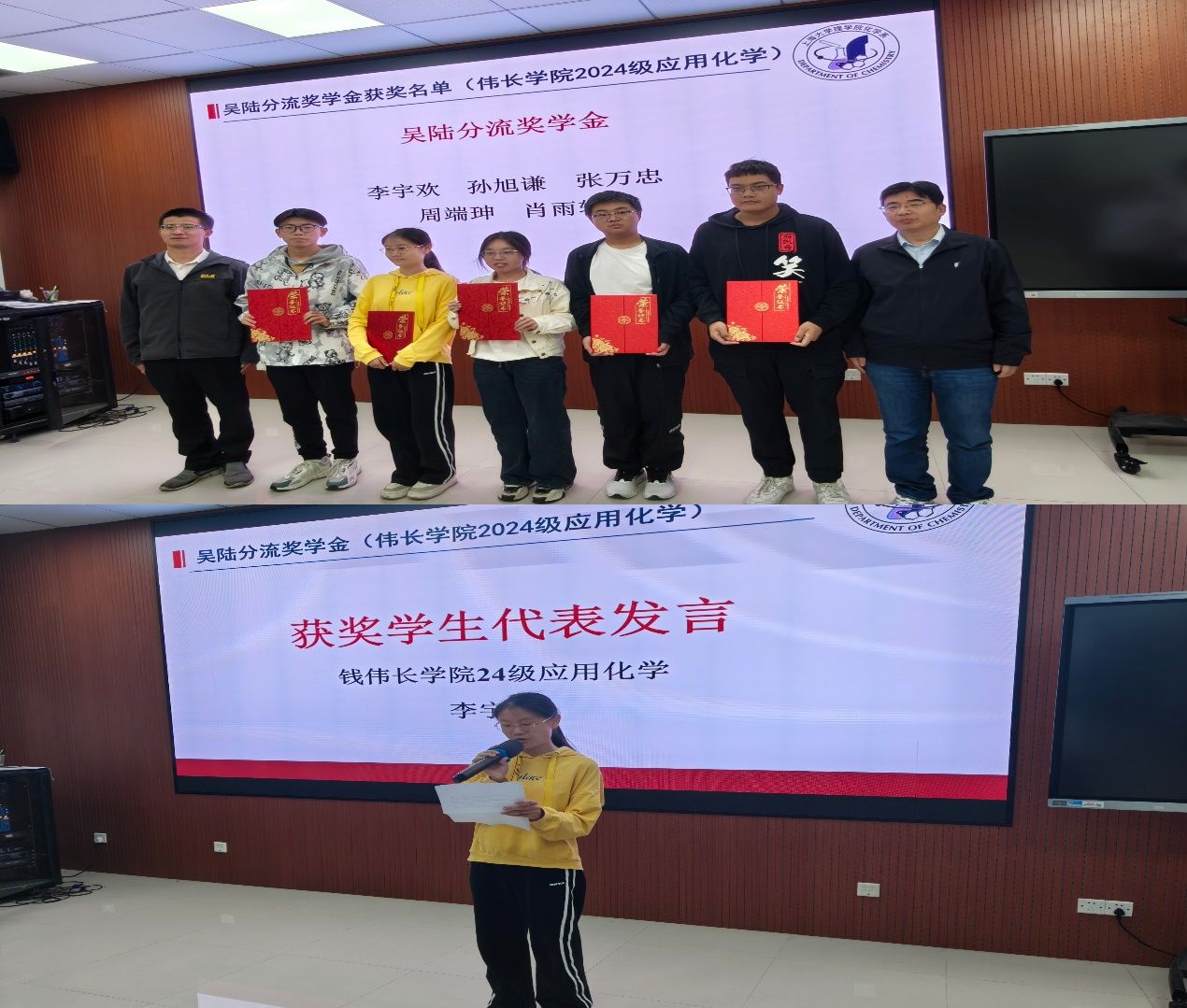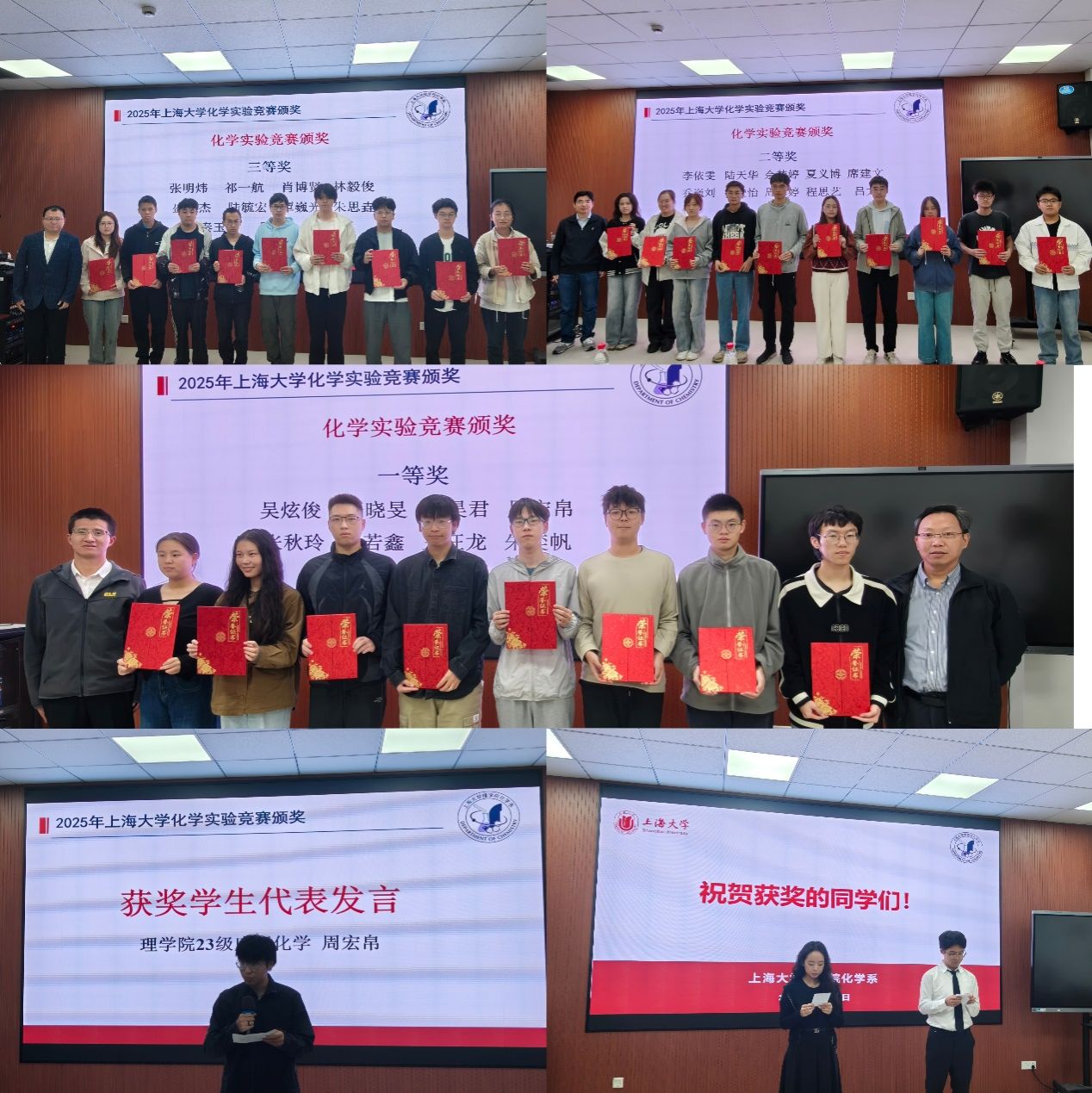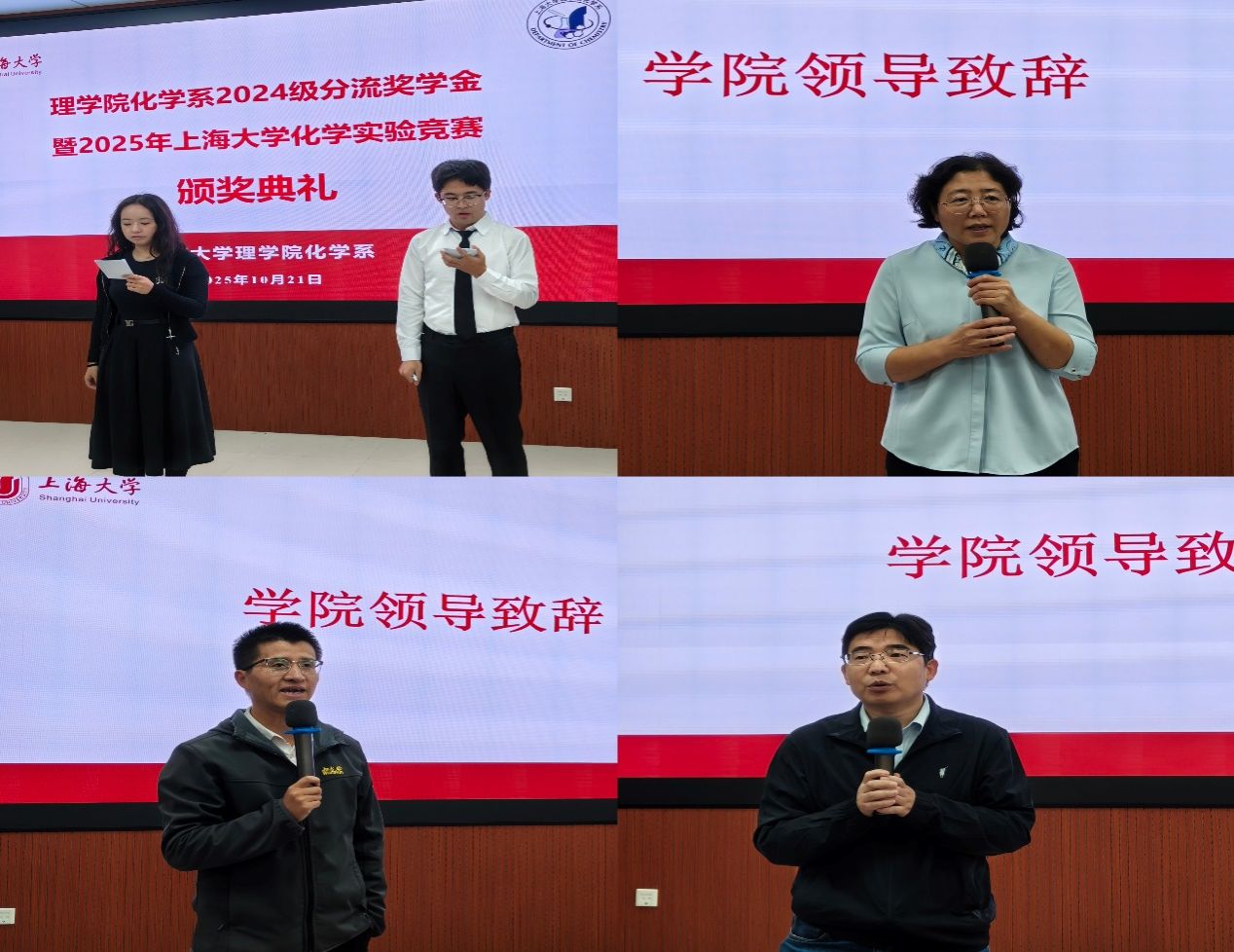 10月21日,理学院化学系2024级分流奖学金暨2025年上海大学化学实验竞赛颁奖典礼在宝山校区HA102教室隆重举办。理学院化学系分流奖学金由化学系校友设立,旨在激励分流进入应用化学专业的同学们秉持初心、勤学笃行,在化学领域深耕细作。 出席此次颁奖典礼的有钱伟长学院党委副书记、副院长沈青松,理学院副院长袁帅,钱伟长学院团委书记魏仲奇,化学学科党总支书记邢菲菲,化学系主任李健,化学系副主任洪玲。颁奖典礼由化学系24级本科生马奥与祝圣云主持,现场气氛热烈。 典礼伊始,邢菲菲老师对化学系校友长期以来给予化学系人才培养工作的鼎力支持表达诚挚感谢,同时肯定了24级同学们分流后的适应能力与学习热情。沈青松老师称化学系分流奖学金是对同学们自强不息砥砺奋进的肯定,希望大家以此为起点,迈向更高平台,他提出化学学科有优质的平台和雄厚的师资,老师们会全力帮助大家在学术道路上走得更远。李健老师祝贺获奖同学,结合化学学科特点分享心得。他说化学学习需扎实理论和严谨态度,希望大家保持钻研精神、尝试前沿课题,同时鼓励同学们积极参与学院的学术交流和科研实践,成长为优秀化学人才。 随后,主持人宣读24级应用化学分流奖学金获奖名单,与会领导们依次为获奖同学颁奖。奥凯分流奖学金获奖学生代表葛逸韬发言时,分享了自己从适应专业学习到参与实验实践的成长历程,表达了在化学学科里坚定的成长,感谢老师们的耐心指导与同学间的互助协作,他表示将以此次获奖为契机,在实验领域深入探索,以梦为马,砥砺前行,用实际行动践行对化学学科的热爱。吴陆分流奖学金获奖学生代表李宇欢最先感谢优秀的校友给自己的激励,也表达了自己学习成长道路上各位老师对自己的帮助与支持,他结合在伟长学院应用化学专业的学习经历,鼓励同学们主动使用学科资源,在理论与实验的结合中拓宽视野,书写青春答卷。 接下来进行的25年上海大学化学实验竞赛颁奖,主持人依次公布竞赛获奖名单。与会领导们为全体获奖同学们颁发证书。 实验竞赛获奖学生代表周宏帛分享了备赛心得,他首先感谢学校搭建一个良好的实验平台,然后点出实验中把握细节的重要性,“宝剑锋从磨砺出,梅花香自苦寒来”,他希望作为化学学子在实验的海洋中翱翔,也期待学弟学妹们可以取得更好成绩。 此次颁奖典礼不仅是对应用化学专业人才培养工作阶段性成果的肯定,更凝聚了校友、学院与师生的共同期望。从奖学金的激励到实验竞赛的淬炼,每一份荣誉都承载着汗水与坚持。相信在各方助力下,应用化学的同学们将以更坚定的步伐,在化学探索的道路上勇毅前行,书写新时代化学人的青春华章。 |